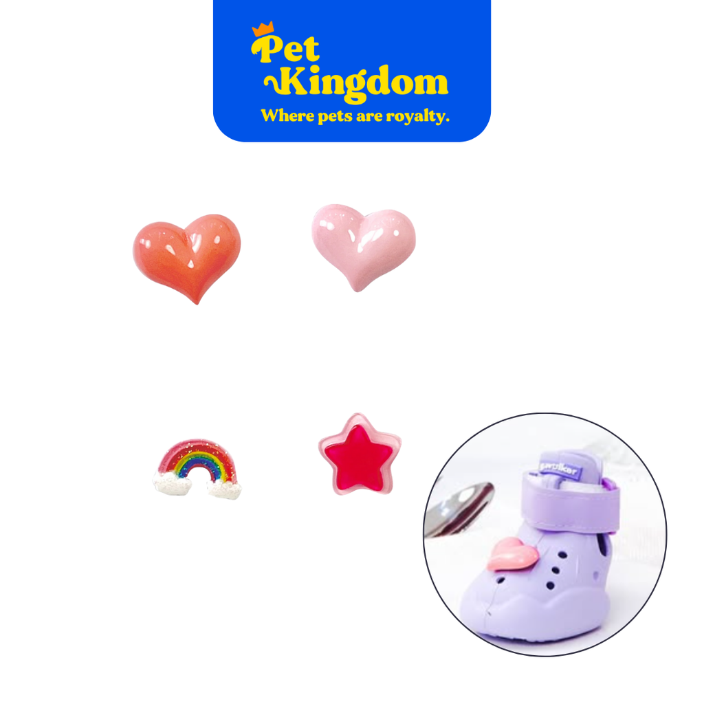 Spread love with sparkly heart-themed charms! This 4-piece set includes glittery, romantic designs that add charm and shimmer to your dog’s shoes. A perfect choice for sweet, stylish fur babies.